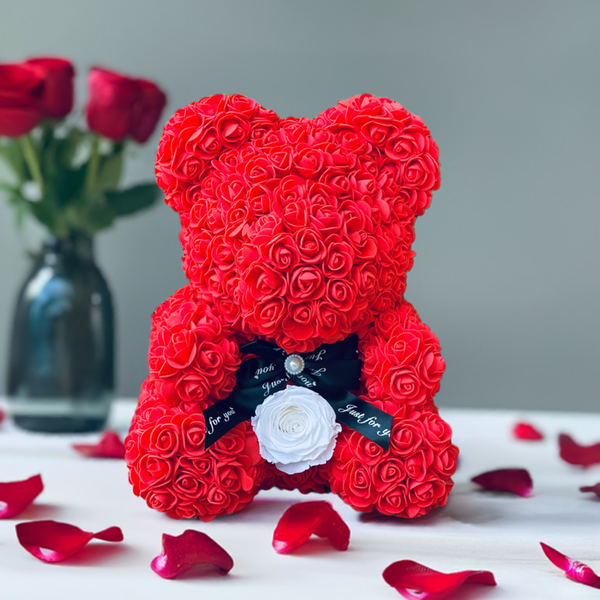 Introducing the exquisite Synthetic Rose Bear, lovingly crafted by hand and elegantly presented in a beautiful gift box.